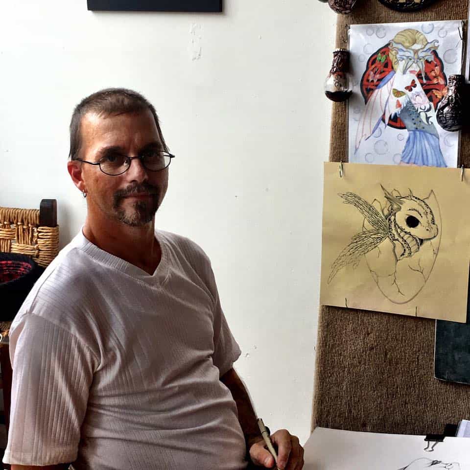 Nathan Miller, is one half of face behind Dragon Moon Creations which he co-owns with his ife Apryl Miller who is a jewelry designer. Nathan has been drawing and painting since childhood and has always been most drawn to fantasy and faeries. Nathan understands chronic pain and how debilitating it can be due to a herniated lower back that proved unfixable.