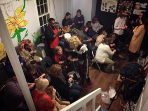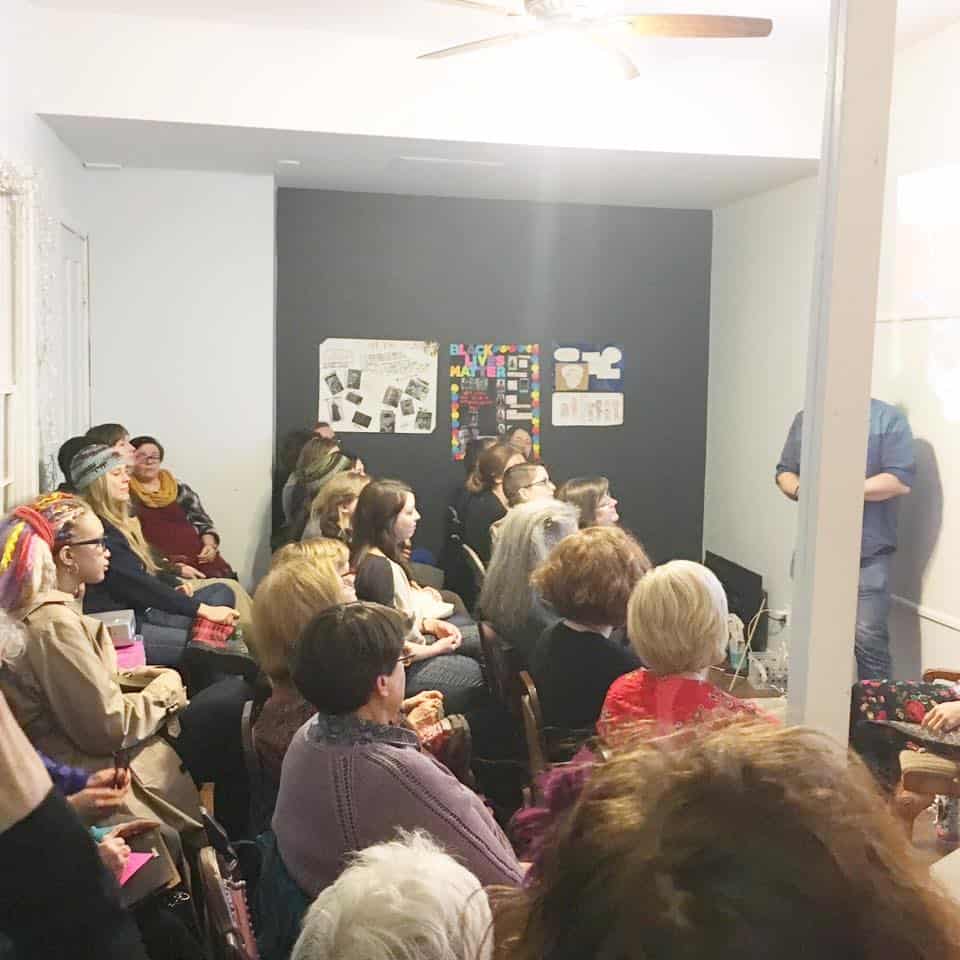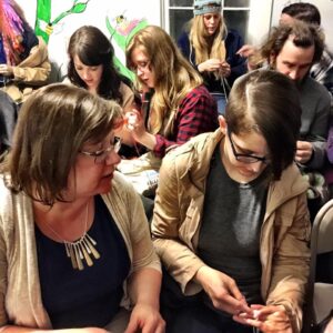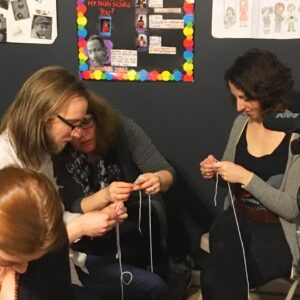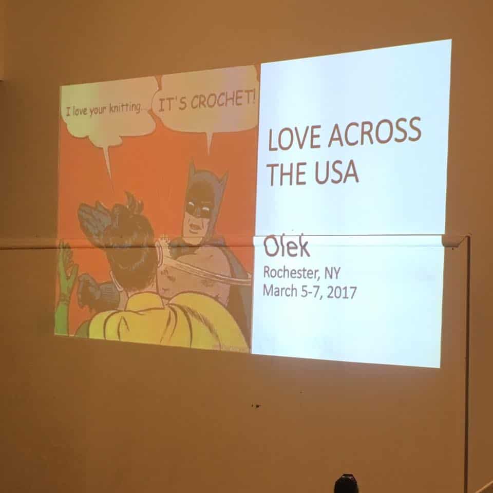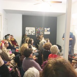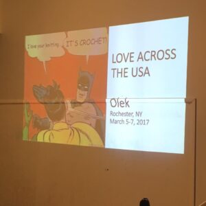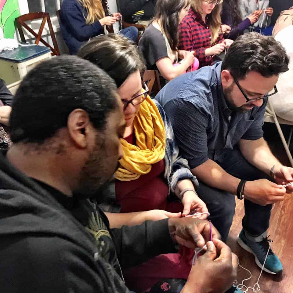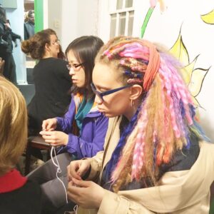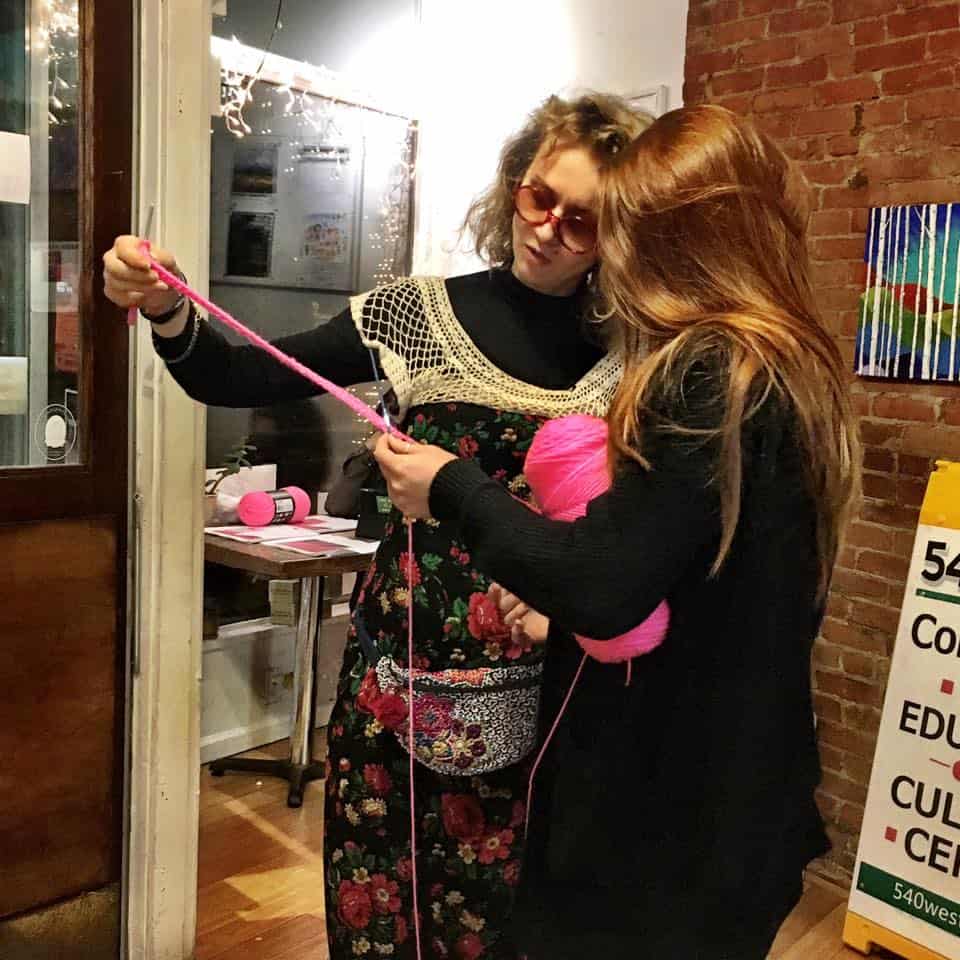 On March 7, International Crochet Artist held the third and last of her series of Crochet Workshops in the centers’ Community Room . This Workshop is part of Olek’s Love Across The USA Tour which see’s the artist visit every state through 2020 to create community created crochet public art. Our historic Susan B. district is the first stop on this tour and will culminate in a crochet portrait (of Susan B. Anthony) that will drape the side of a building in our district. Crochet enthusiasts near and far came out to 540WMain to hear Olek’s dynamic story and learn her technique. The best part about this project is that the community will create the squares needed for the work of art. Over 40 community members came out to the workshop and the camaraderie and electric energy was a sight to behold. In fact, so many came out that the community was overflowing. I am thankful to The Wall Therapy team for coordinating this huge effort and including 540WMain in this historic project.